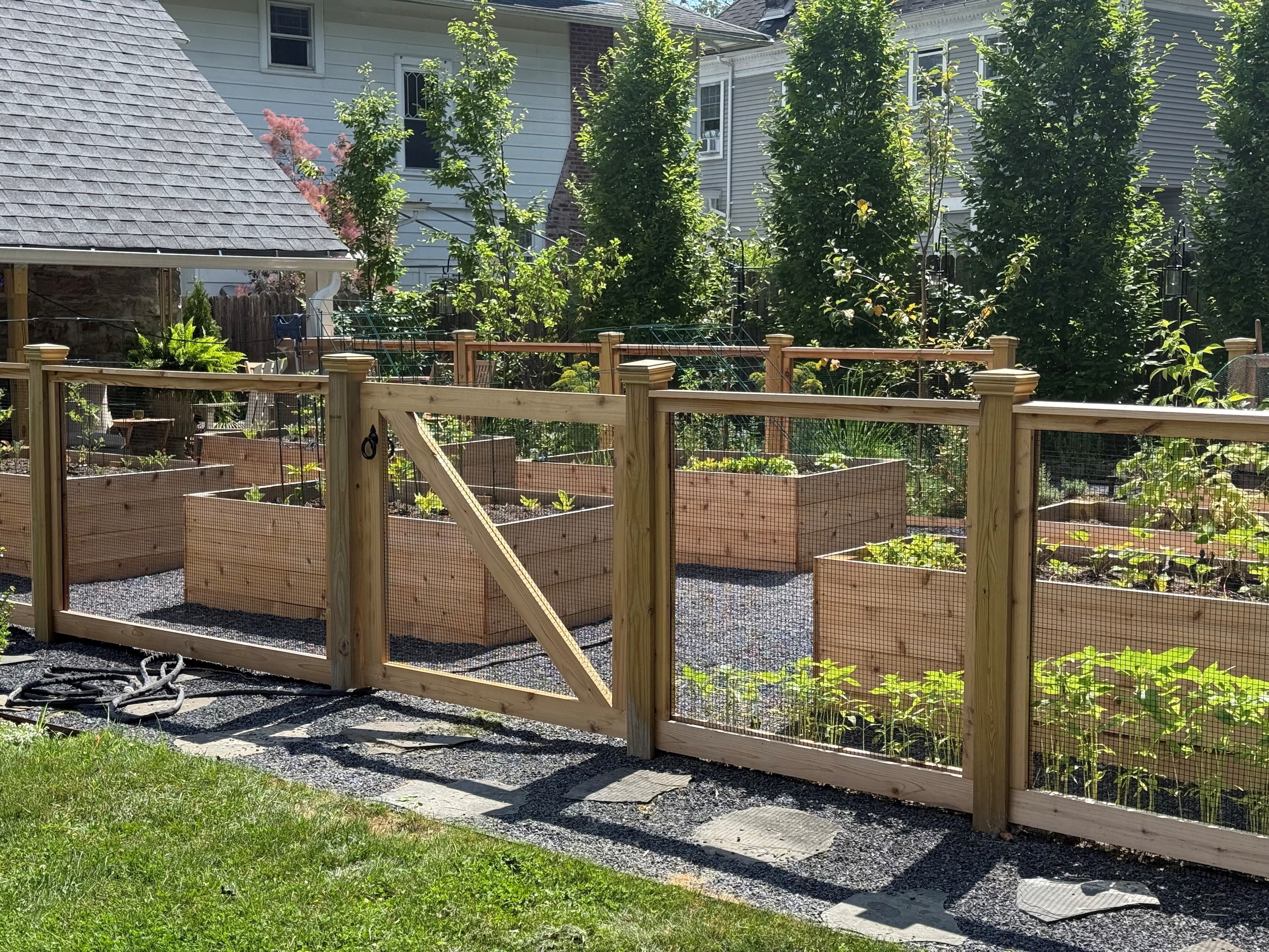 Check out this stunning raised garden setup by Misha in NY! She built a beautiful paneled wall using our 5' 1/2" wire mesh to keep her garden protected and thriving. We love seeing how Critterfence helps bring creative garden visions to life!