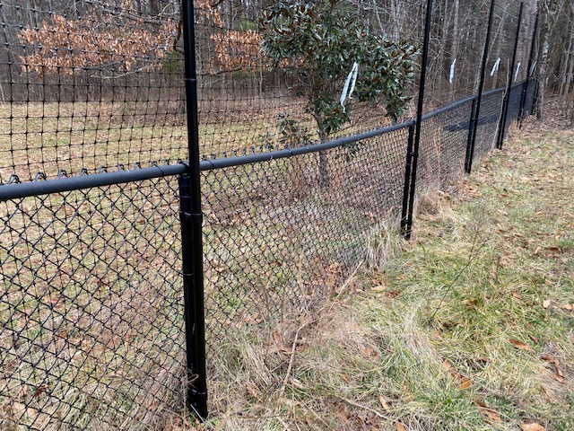 A fence installation in North Carolina, the client wanted a 7.5 foot tall deer fence extended up from their 4 foot tall chain link fence. Clamps are used to attach to the existing fence and nothing needs to anchor it in the ground. The extended up section is removable. One of our easiest to install fence kits. https://www.critterfence.com/p/557-Fence-Kit-4-Extend-Up-To-8-feet-Chain-Link.aspx